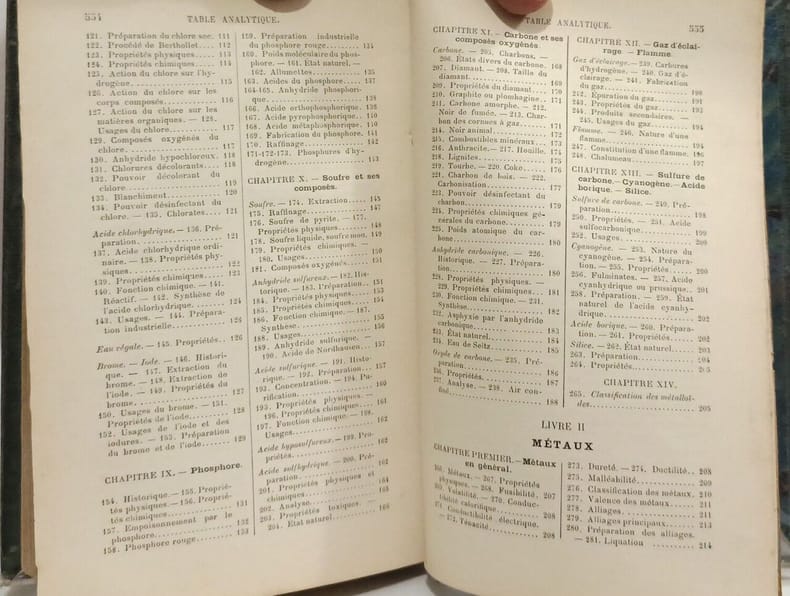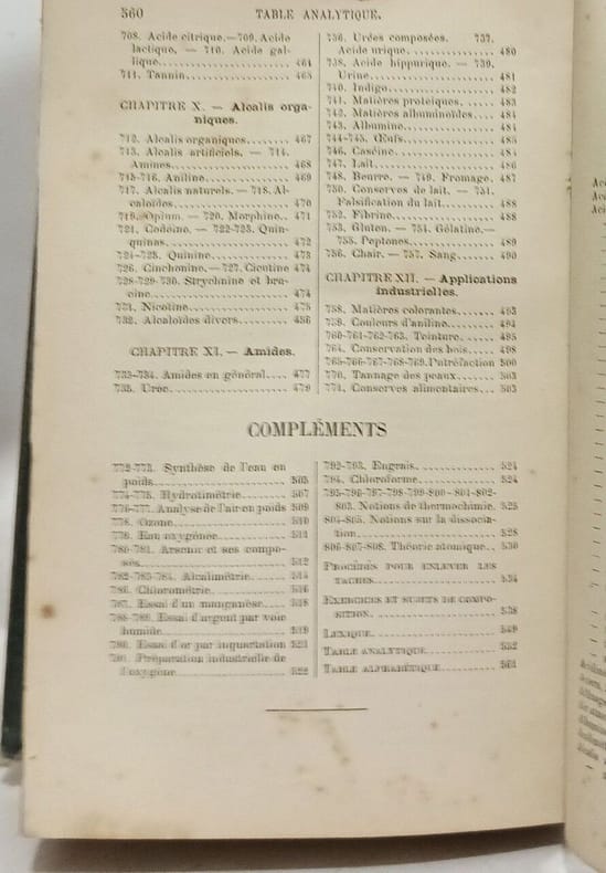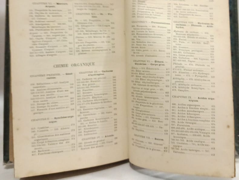 5eme édition revue et augmentée, 1827 "Contents, Chapitres : Errata, table, xiv, Texte, 697 pages - 1. Des substances vegetales neutres, ou dans lesquelles l'hydrogène et l'oxygène sont en proportions nécessaires pour faire de l'eau, sucre ordinaire ou de canne, sucre de betterave, de raisin, de diabètes, de champignon, du miel , de la mannite, de l'asparagine, de l'amidon, de la gomme, du ligneux - 2. Des substances dans lesquelles l'hydrogène est en excès par rapport à l'oxygène : De la stéarine et de l'oléine, des huiles, des huiles grasses, des savons, des huiles essentielles (Essence d'anis, bergamotte, cédrat, orange, canelle, girofle, jasmin, lavande, menthe poivrée, fleurs d'oranger, romarin, rose, térébenthine, amandes amères), des résines, des gommes-résines, des baumes, du caoutchouc, de la cire, du camphre, des vernis, de la glycérine, de l'alcool ou esprit-de-vin, des éthers - 3. Des matieres colorantes : De l'hématine, de la couleur rouge du carthame, de l'indigo, du safran, de la carmine - De la teinture, teinture rouge en garance, teintures jaunes en gaude - Tournesol - Teinture en noir et en gris - Teinture en couleurs composées - 4. Des substances végéto-animales, gluten, ferment - 5. Des matières dont l'existence est douteuse, amidine, bassorine, bryonine, cathartine, cérine, cytisine, fungine, ... - Chapitre 4. De la seve, des sucs particuliers, des bois, des écorces, des racines - Des feuilles de tabac, de belladone, de gratiole - Des fleurs, du pollen, des semences, des fruits charnus, des bulbes, des fucus, des lichens, des champignons - Chapitre 5. De la fermentation : Fermentation vineuse, spiritueuse ou alcoolique - Du vin, du cidre, de la bière, des liqueurs vineuses, de l'extraction de l'alcool, de la fermentation acide, putride, du terreau, de la tourbe, du lignite, de la houille - Livre II. Corps organiques animaux ou chimie animale : Des principes des substances animales - Des substances animales - Des différentes parties composant les animaux : De la digestion et de ses produits immédiats - Du sang - De la circulation et de la respiration - Sources de la chaleur dans l'économie animale - Des liqueurs des sécrétions - Des matières molles et solides : Civette, ambre gris, ivoire, corne de cerfs, oeufs, laite des poissons, os et encre de sèches, coquilles, perles, miel, cire, cochenille, résine-laque, soies, etc... De la fermentation putride - Des fumigations - Le baron Louis Jacques Thénard, né à La Louptière le 4 mai 1777 et mort à Paris le 21 juin 1857, est un chimiste français. Il fut professeur au Collège de France, à l'École polytechnique et à la faculté des sciences de Paris, député puis pair de France, vice-président du conseil royal de l'instruction publique et chancelier de l'Université. - En 1799, il découvre, sur commande du ministre Chaptal pour la manufacture de Sèvres, le ""bleu de Thénard"" (le bleu de cobalt), qui sert à colorer la porcelaine. À partir de 1808, il collabore à l'école polytechnique avec Gay-Lussac : ils travaillent à la préparation du potassium et du sodium. En 1811, il isole le silicium. Il découvre l'eau oxygénée en 1818, ainsi que le bore, et établit une classification des métaux. En 1813, il publie son célèbre Traité de chimie. En minéralogie, il décrit quelques espèces, notamment la stibine sous le nom de proto-sulfure d'antimoine. (source : Wikipedia)" dos un peu frotté avec de légères épidermures et un petit accroc sans gravité à la coiffe supérieure, la reliure reste en bon état, reliure d'époque (1827), intérieur propre, certaines pages sont brunie, notamment les premières pages (page de titres, page d'errata) et les 2-3 dernières pages de texte, l'ensemble du texte est sinon frais et propre, papier de qualité, rousseurs éparses, cela reste un bon exemplaire du tome 4 SEUL du Traité de chimie de L.-J. Thénard, complet en lui-même sur la chimie végétale et la chimie animale, avec de très nombreuses informations précieuses pour des disciplines comme la parfumerie, la teinture, la fermentation alcoolique, les phénomènes de transformation de la matière chez les animaux