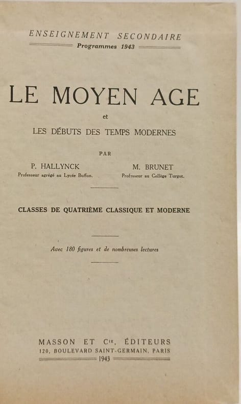 Enseignement secondaire. Programmes 1943. Avec 180 figures et de nombreuses lectures. Classification Dewey : 372.89-Livre scolaire : histoire / géographie