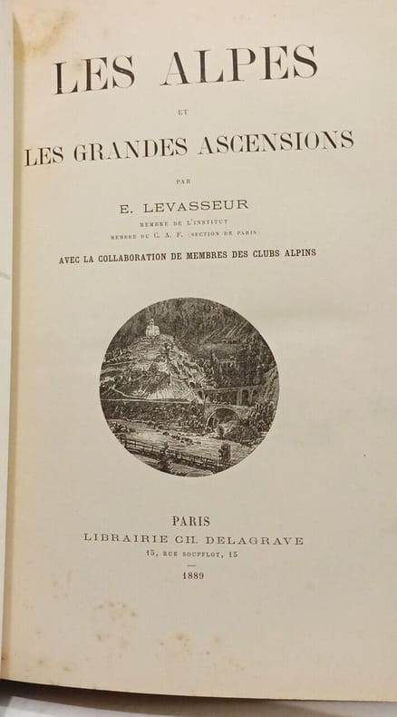5è édition d'un ouvrage publié en 1899 par le géographe et historien Emile LEVASSEUR (1828-1911), "avec la collaboration de membres des Clubs Alpins": géographie physique et humaine des Alpes, suivie de leur description détaillée par chaines, massifs, montagnes, avec l'histoire des ascensions par des membres des Clubs alpins; illustré de gravures (vues) et cartes. Exemplaire remis en prix d'excellence de 2nde au lycée d'Avignon en 1898.