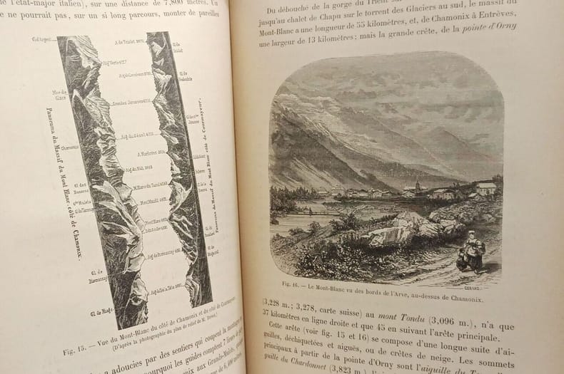 Paris, Delagrave, Paris, Delagrave1895 ; grand in-8, cartonnage percal. rouge de l’époque. VIII pp., 390 pp.Étude de toutes les chaînes des Alpes et histoire des ascensions célèbres : Saussure, Vallot, Martel, etc. - 75 illustrations, cartes, vues.