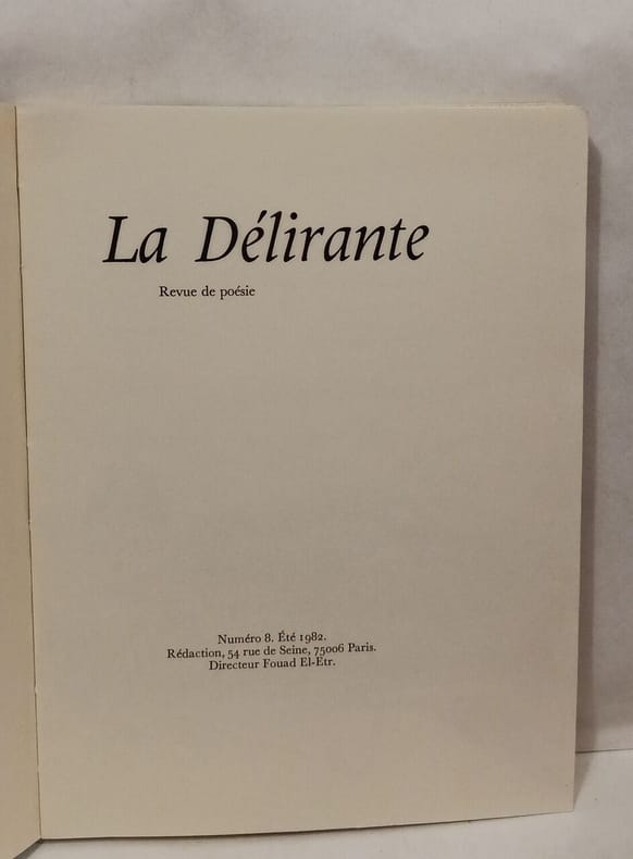 LA DELIRANTE. 1979. In-4. Broché. Etat d'usage, Couv. convenable, Dos satisfaisant, Intérieur frais. 218 pages - nombreuses illustrations en noir et blanc in et hors texte.. . . . Classification Dewey : 841-Poésie
