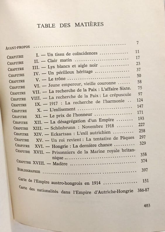 Flammarion 1971, in-8 broché, couverture illustrée à rabats, 403 p. (plis de lecture marqués au dos, sinon très bon état) Première édition française ; avec photos HT et bibliographie. Bien avant le livre de Jean Sévillia, cette biographie de Charles de Habsbourg (1887-1922) restituait son vrai visage à "l'empereur de la paix" en s'appuyant sur de nombreuses archives et sur les souvenirs de Zita.