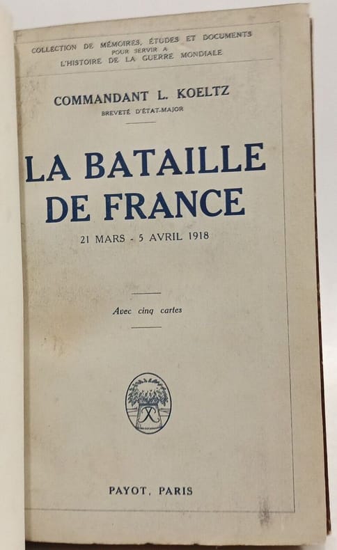 PARIS, Payot, (Coll. de Mémoires, Etudes et Documents pour-9 croquis et un portrait hors texte -1928 - in-8, broché - 262 + 1 page - 5 cartes - bon état - Réf. 48230