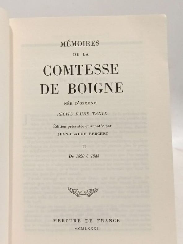 Mercure de France "Temps retrouvé n°23 et 24" 1971, 2 volumes in-8 brochés, couvertures illustrées à rabats, 541 et 510 p. (pliure au premier plat de couverture du second tome, sinon bon état) Notes de Jean-Claude Berchet. Première édition dans cette excellente collection de l'intégrale des mémoires d'un témoin hors pair, qui fréquenta tous les grands acteurs de ces périodes passionnantes ; on comprend que Proust s'en soit inspiré.