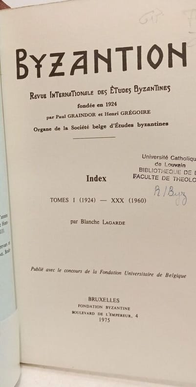 Fondation byzantine 1975 in8. 1975. Broché.
