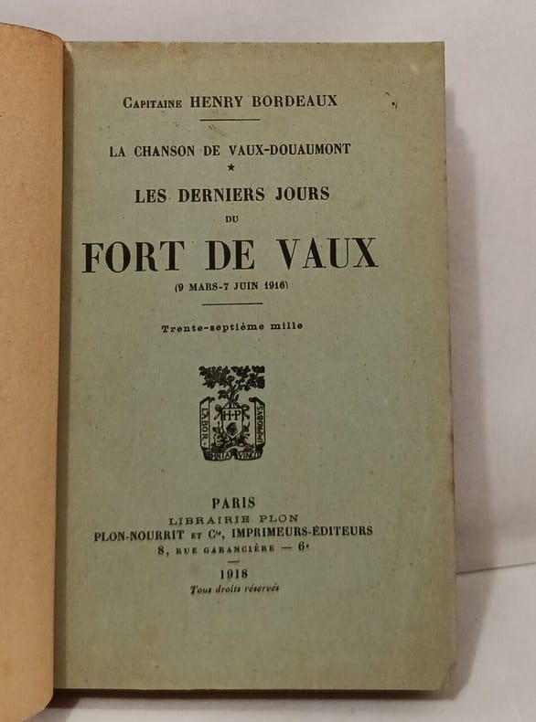 "1917. Paris Plon- Nourrit éditeurs 1917 - Broché 12 cm x 19 cm 362 pages -Texte de Capitaine Henry Bordeaux - 2 cartes hors-texte - Bon état d'usage"