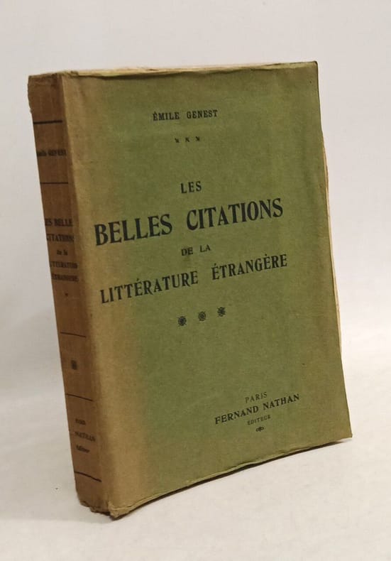 Fernand nathan 1926 in8. 1926. Broché. Les Belles Citations de la littérature étrangère suggérées par les mots et les idées suivies d'un index alphabétique les noms des auteurs cités à l'usage des élèves des hautes classes des journalistes des gens du monde etc