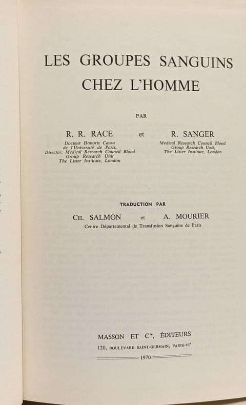 Préface de A. Tzanck. Le système ABO. Le système Lewis. Le système MNSs... Classification Dewey : 610-Sciences médicales. Médecine