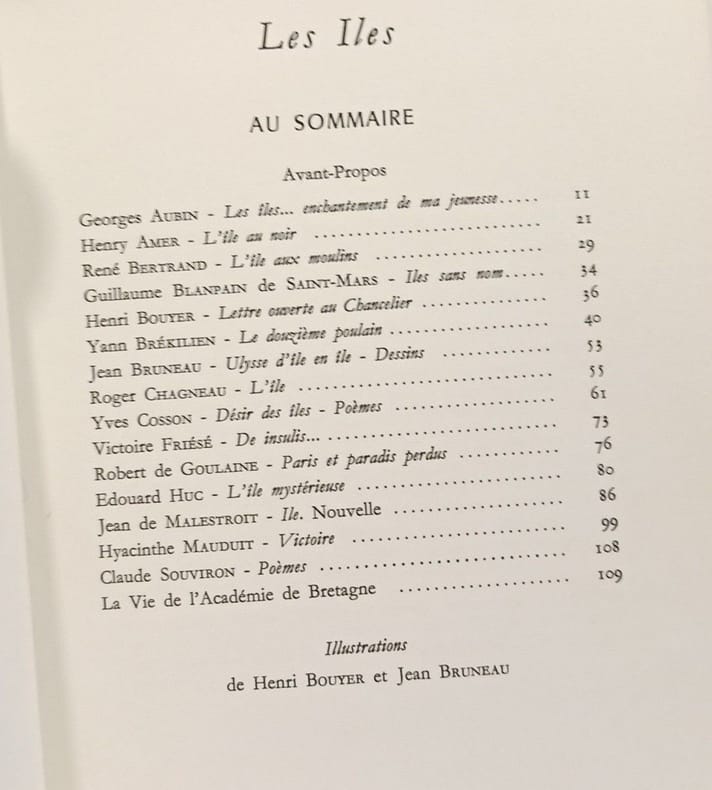 ILLUSTRATIONS DE HENRI BOUYER ET JEAN BRUNEAU - Sommaire: Georges Aubin, les iles..enchantement de ma jeunesse - Henry Amer, l'ile au noir - René Bertrand, l'ile aux moulins... Classification Dewey : 90-Livres rares