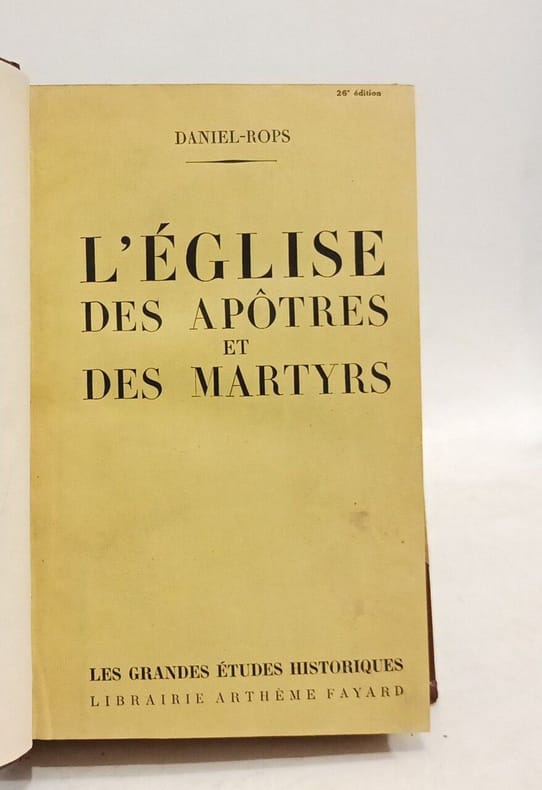 "L'Église des Apôtres et des Martyrs" est le premier volume de la série "L'Église des Origines à nos jours" de l'écrivain et historien français Daniel Rops. Cette série explore l'histoire de l'Église catholique à travers les âges, en commençant par les premiers temps du christianisme. Dans ce premier volume, Daniel Rops se penche sur les débuts du christianisme, depuis l'époque des apôtres jusqu'à celle des premiers martyrs. Il explore les événements marquants de cette période, tels que la diffusion du christianisme dans l'Empire romain, les persécutions des premiers chrétiens, et les enseignements des apôtres qui ont contribué à façonner la foi chrétienne. "L'Église des Apôtres et des Martyrs" offre une vision informative et narrative des premiers siècles du christianisme et de l'Église primitive. Daniel Rops combine une recherche historique détaillée avec une narration engageante pour donner vie à cette période cruciale de l'histoire religieuse. Cette série, comprenant plusieurs volumes, est une ressource précieuse pour ceux qui s'intéressent à l'histoire de l'Église catholique et du christianisme en général, en offrant une perspective catholique sur les événements et les figures clés de l'histoire religieuse. Envoi autographe en page de garde. vol in-8, 185x130, broché, 720pages, très bon exemplaire. Arthème Fayard, 1948 d'autres livres de Daniel Rops en vente, groupez les achats ! ref/162
