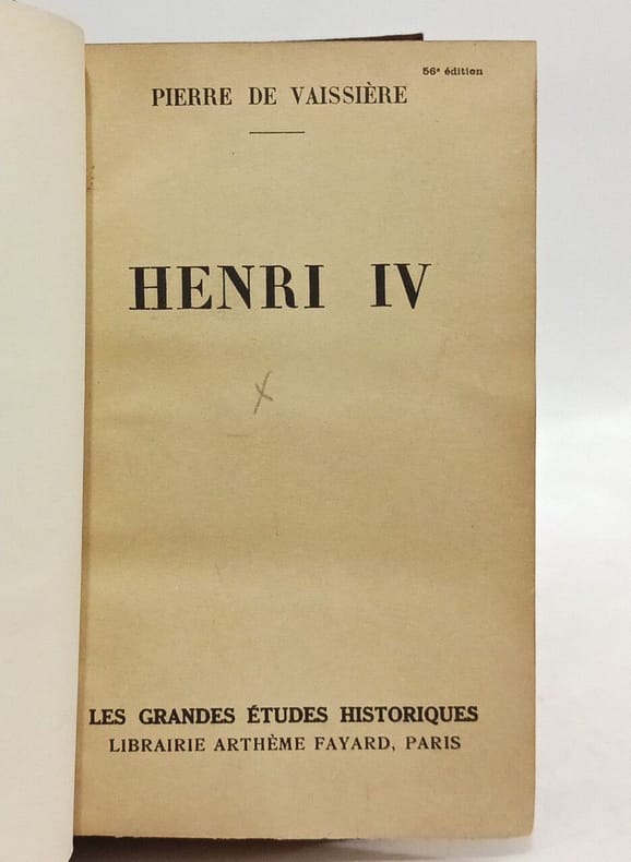 Paris, Baudry, Versailles, Cerf et fils, 1876 ; in-volume in-8°, demi-veau fauve de l' époque, dos lisse orné de jeux de filets dorés et à froid, titre doré sur étiquette de maroquin vert, fer doré du Jockey-Club en pied ; ex-libris étiquette avec petit manque ; (4)pp.,491pp. Petit Cachet bleu du Jockey Club au titre.Portrait d'Henri IV gravé à l' eau-forte par Boilvin en frontispice et 1 portrait H.T. ( masque mortuaire de Henri IV, héliogravure).Quelques piqûres, petits accrocs sans manque à la coiffe supérieure, dos bruni.