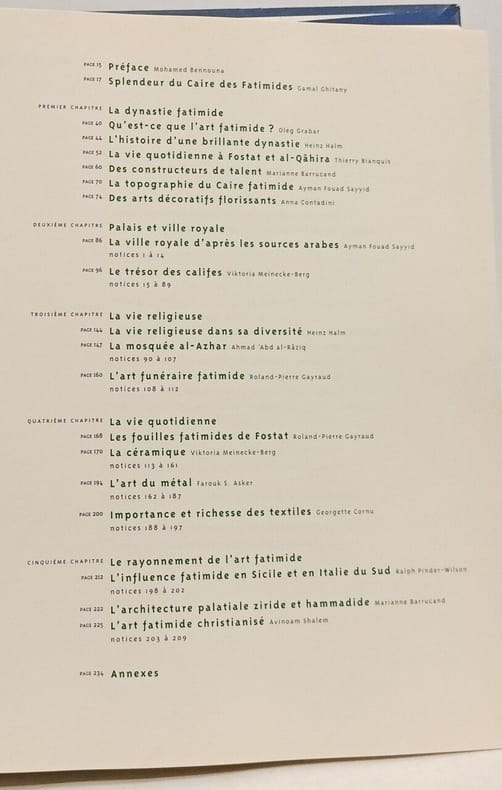 Sommaire: Une dynastie conquérante- Le Caire, cité fatimide- Un âge d'or pour les arts décoratifs- L'empreinte fatimide en Sicile- Carte et monuments du Caire- etc. Classification Dewey : 702-Ouvrages divers sur les beaux-arts et les arts décoratifs
