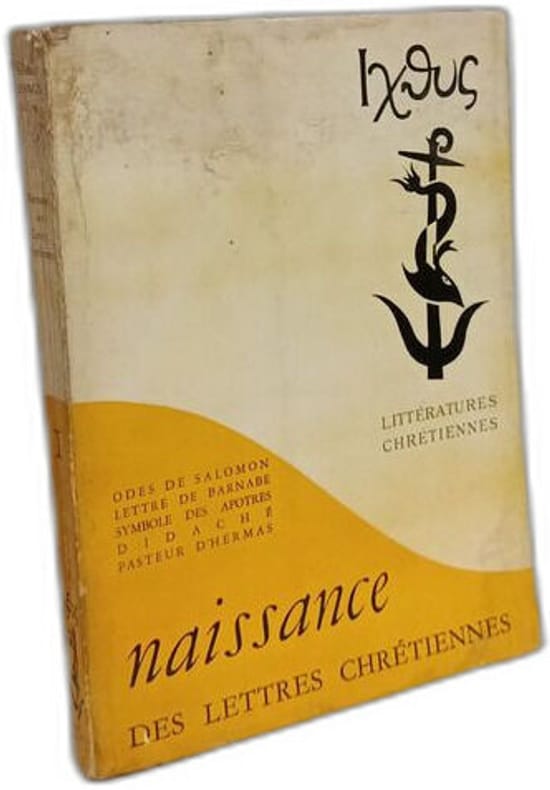 Éditions de Paris 1957 in8. 1957. Broché. Naissance des lettres chrétiennes. Odes de Salomon Lettres de Barnabé Symbole des Apôtres Didaché Pasteur d'Hermas. Textes intégraux établis et présentés par Adalbert Hamman. Coll. « Littératures chrétiennes » 1