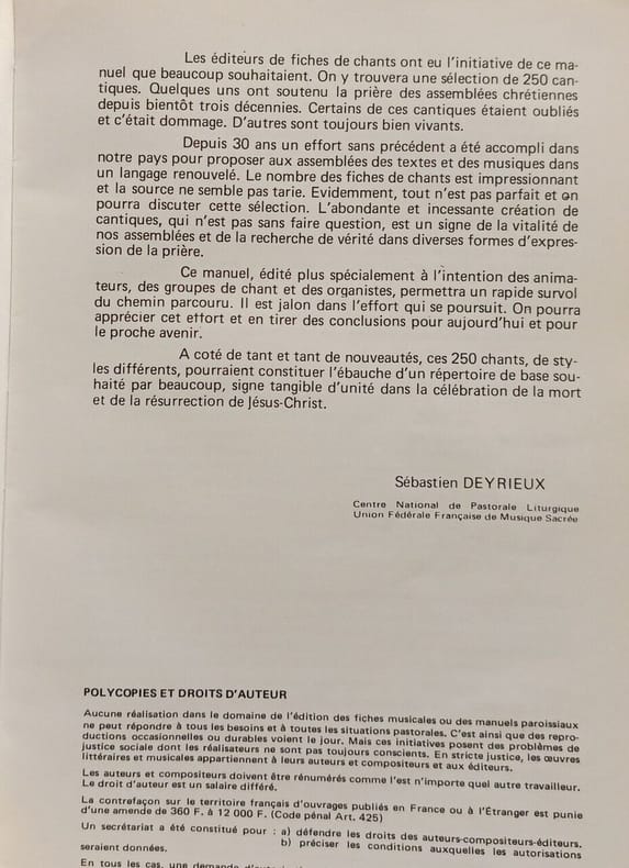 Cerf / Chalet / Levain. 1981. In-8. Broché. Bon état, Couv. convenable, Dos frotté, Intérieur frais. 271 pages dont de nombreuses de partitions.. . . . Classification Dewey : 264.2-Musiques et chants, hommage à Dieu