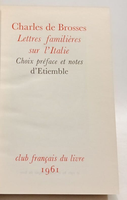 Le Président de Brosses en Italie. Classification Dewey : 846-Lettres, correspondance littéraire