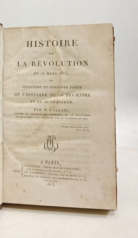 Paris, Chanson-Le Normant-Michaud, 1815 in-8, XIV-422 pp., demi-basane fauve, dos lisse, filets dorés (reliure de l'époque). Mors abîmés.