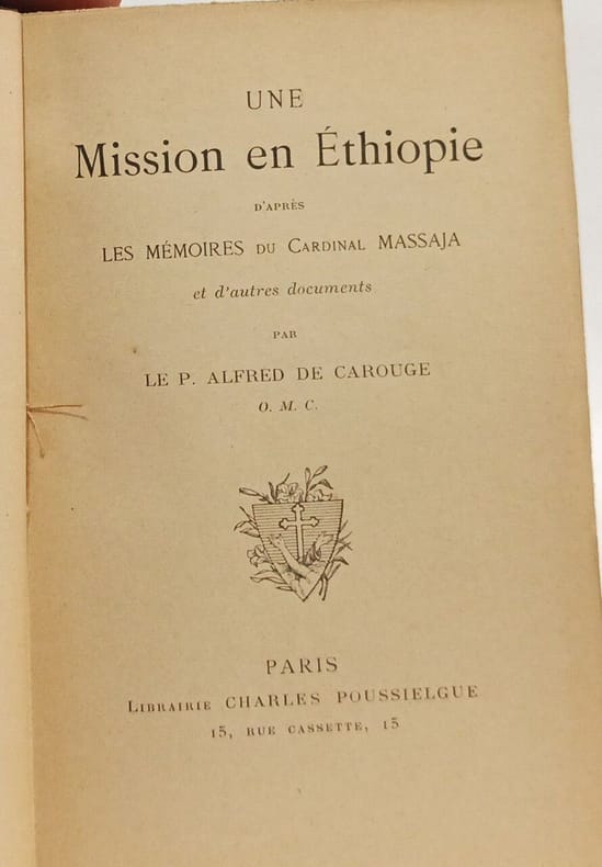 Une mission en Ethiopie: d'après les mémoires du cardinal Massaja et d'autres documents par le P. Alfred de Carouge. (Paris: Librairie Charles Poussielgue, s.d.). [M.C.: Ethiopie]