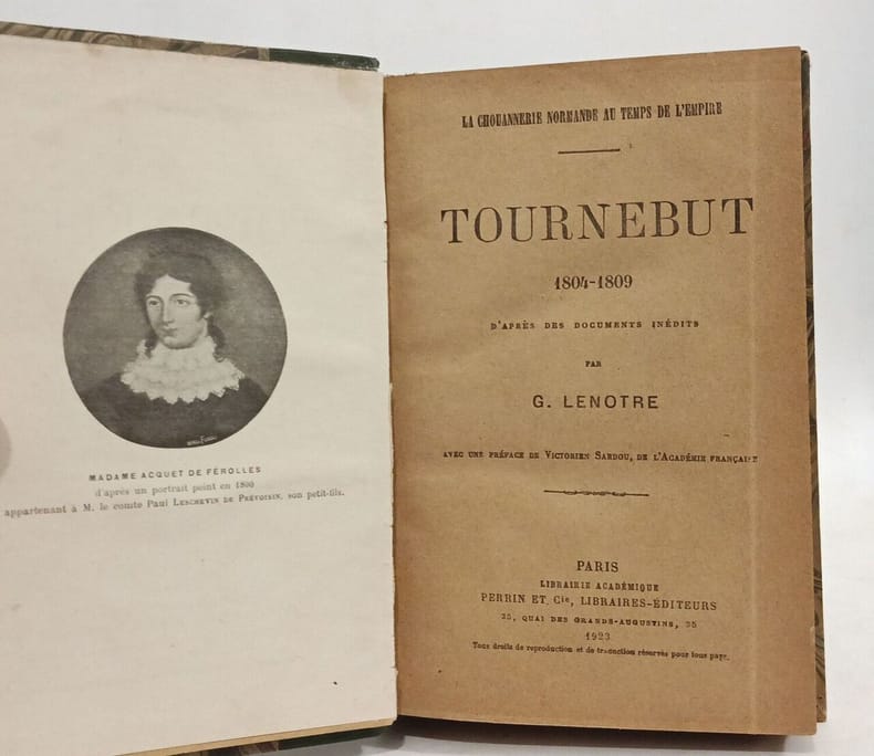 Un volume in-8°, broché, couverture souple éditeur de couleur vert clair, 381 pages + une table des matières, quelques illustration en noir hors texte et un frontispice représentant Madame Acquet de Férolles. Un petit manque au bas du dos mais ETAT TRES SATISFAISANT.