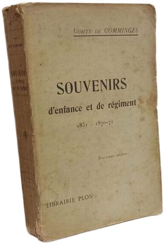 Souvenirs d'Elie de Comminges (1831-1894), sous officier de cavalerie, puis officier au Régiment des Guides de la Garde impériale à partir du 2 janvier 1855. Son témoignage de la vie de garnison est émaillé de souvenirs cocasses. L'expérience militaire de cet officier essentiellement mondain reste néanmoins assez nulle (la seule campagne à laquelle il participe en Italie, où il servit dans l'escadron d'escorte de l'Empereur Napoléon III, est décrite comme une suite de banquets de bals et parfois de batailles vues de très loin...). Démissionnaire le 26 avril 1861, il commanda, pendant la guerre de 1870-71, le 2e bataillon de la Garde mobile de la Haute-Garonne. Pages intéressantes sur les difficulté d'organisation de ces troupes hétéroclites de peu de valeur militaire. — "Ses souvenirs, rédigés avec un certain humour, forment un excellent témoignage sur l'existence quotidienne dans les armées du Second Empire." (Bourachot, 101)