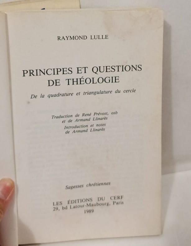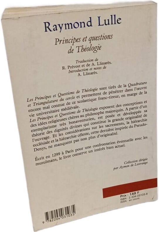 cerf 1989 in8. 1989. Broché. Ouvrage théologique de Raymond Lulle philosophe et théologien majeur du Moyen Âge publié par les Éditions du Cerf maison spécialisée dans les publications religieuses et philosophiques