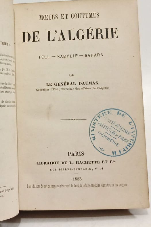 Ed. Librairie de L. Hachette et Cie, Paris, 1858, 428pp. In-12. Troisième édition. Etat correct, reliure demi-percaline, dos bleu nuit avec titre doré, plats cartonnés usés (celui-du dessous avec manques/épidermures : voir photo), coins cornés, avec tampon du ministère de l'intérieur sur la page de garde, intérieur frais (rousseurs ne gênant pas la lecture : voir photos).