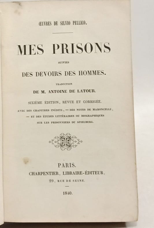 Pellico Silvio. Mes prisons. In English (ask us if in doubt)./Pellico Silvio. Mes prisons. Edition illustree par Tony Johannnot. Paris. Charpentier Libraire-editor. 1843. 374 c. SKUalb71586d075115ff6b.