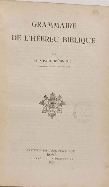 Rome, Institut biblique pontifical, 1923. In-8 broché, 542-79 pp., paradigmes, index. Ex-libris.
