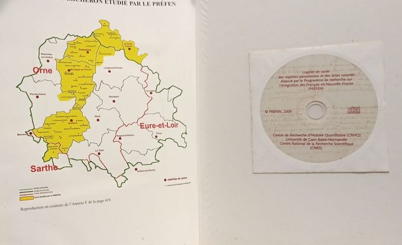 Caen, Centre de Recherche d'Histoire Quantitative, 2005. 1980 g In-4, reliure éditeur, 431-[1] pp., [1] f., carte. Contient un CD. De nombreux documents retranscrits son extraits des Archives départementales de l'Orne. Publication s'inscrivant dans le Programme de recherche sur l'émigration des Français en Nouvelle-France (PREVEN). . (Catégories : Généalogie, Perche, Orne, Paléographie, Démographie historique, )