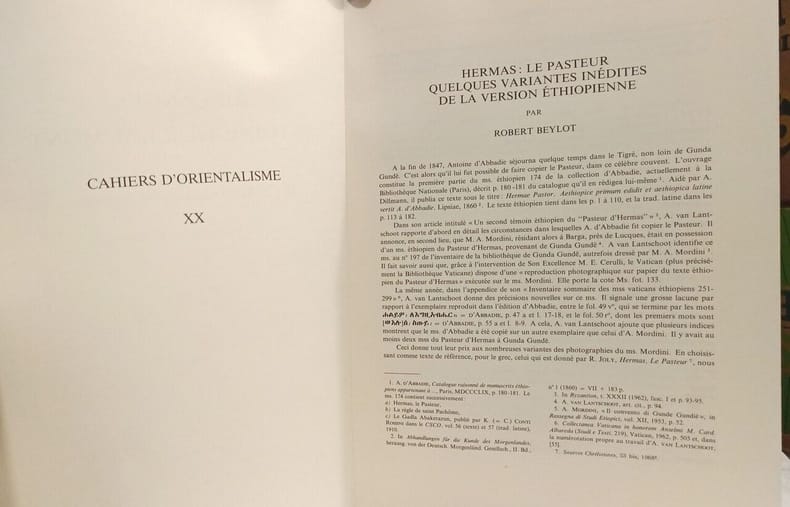 Patrick Cramer Editeur 1988 in4. 1988. Broché. Hermas: le Pasteur quelques variantes inédites de la version éthiopienne --- Mélanges Antoine Guillaumont - contributions à l'étude des christianismes orientaux avec une bibliographie du dédicataire - Tiré à par
