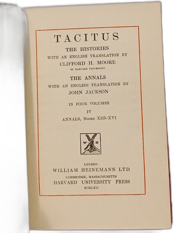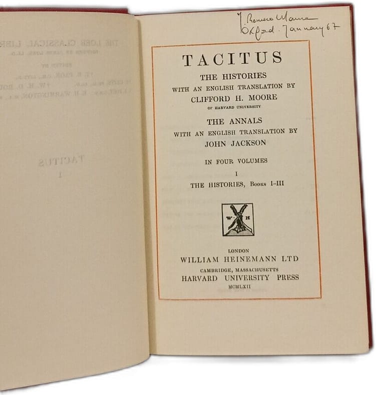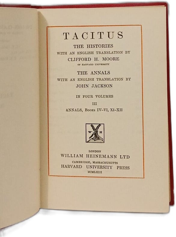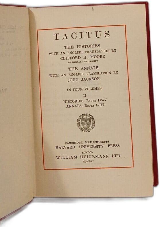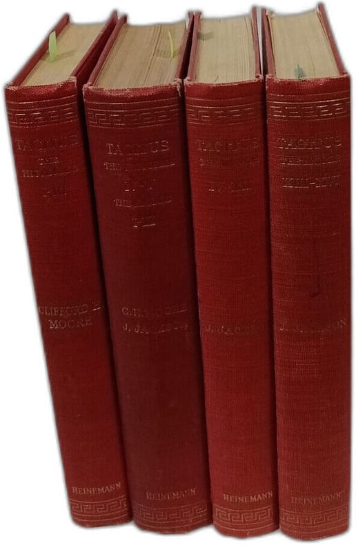Heinemann Sans date. Cartonné. 4 volume(s). Ouvrage académique de Clifford Moore sur l'historien romain Tacite probablement une étude critique une traduction annotée ou une édition commentée de ses œuvres publiée par l'éditeur spécialisé Heinemann