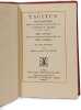 Lugduni Batavorum Ex Officina Elzeviriana 1634 Première édition. Contient toutes les oeuvres de Tacite selon l'édition définitive de Iustus Lipsius. Bel exemplaire. Reliure cartonnée de l'époque. Motifs estampés dorés au dos et étiquette de titre en cuir. La reliure est assez frottée, avec une usure des bords du dos avec une certaine perte de surface. Le dessin et le dos sont très décolorés. Titre gravé montrant une figure allégorique féminine tenant un miroir devant un dieu de la rivière avec une corne d'abondance. Une planche supplémentaire, par C. C. Duysent, montre un bouclier avec les portraits d'Auguste, de Livie et de Tibère. 16mo. Les feuilles de garde portent des marques et des signatures au crayon et à l'encre. Le coin de la première page de garde a été coupé pour enlever une signature. Le reste du livre est en très bon état, propre. Texte en latin. Un bel exemple de la typographie d'Elsevier. Pp. [xx]786 +[29] index. Publius Cornelius Tacitus, connu sous le nom de Tacite (v.AD 56 - v.120), était un historien et homme politique romain. Tacite est largement considéré comme l'un des plus grands historiens romains par les chercheurs modernes. 12.5cm x 8cm.