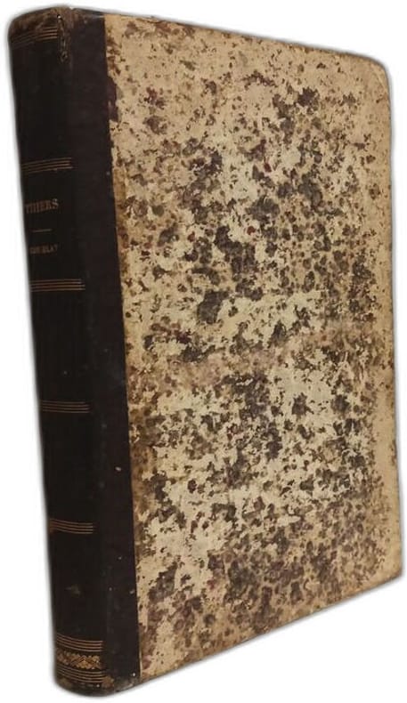 Titre : Histoire de l'Empire - faisant suite à l'Histoire du Consulat Auteur : Thiers Adolphe Édition : Édition illustrée de deux cent quatre-vingts dessins Lieu : Paris Éditeur : Lheureux et Cie, éditeurs, 31 rue de Seine Date : 1865 Tomaison : 4 volumes - tomes 1 à 4 Format : grand in-4 Reliure : demi-basane de l'époque, dos lisses ornés de filets et titres dorés, plats marbrés vert et noir Langue : français Imprimeur : Typographie de Henri Plon, 8 rue Garancière Illustrations : 280 gravures sur bois dans le texte, nombreuses vignettes historiques (par ex. Mort de Nelson) Description : Ensemble complet des tomes 1 à 4 de l'édition illustrée de l'Histoire de l'Empire par A. Thiers, texte sur deux colonnes. Suite directe à l'Histoire du Consulat. Bel ensemble de grand format, reliures uniformes d'époque avec titres dorés. Intérieurs propres avec rousseurs éparses, quelques frottements aux dos et aux coiffes, un début de fente ou pli ancien en marge d'un feuillet liminaire observé sur un volume, ensemble solide. Poids des 4 volumes : 7.1 kilos