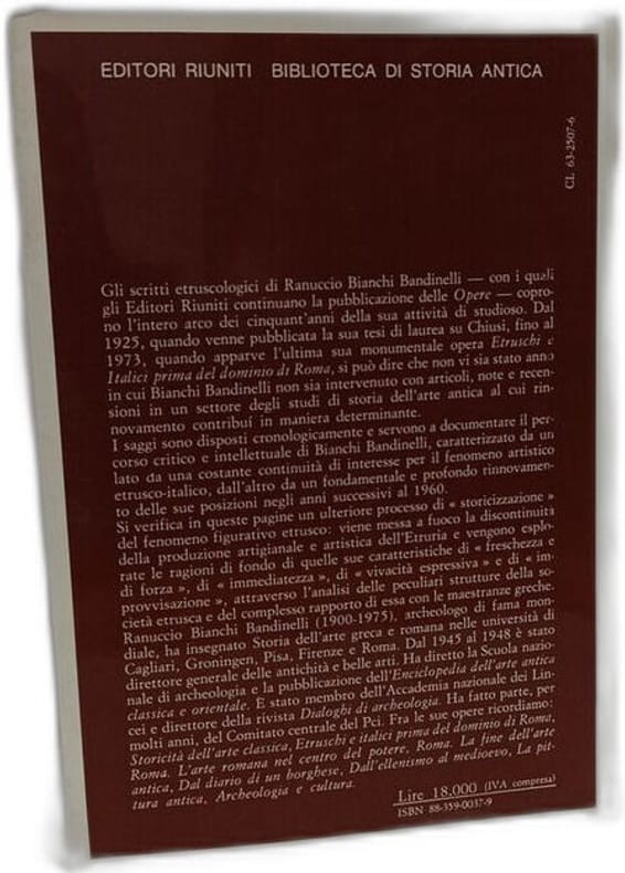 Editori Riuniti 1982 in8. 1982. Broché. Ouvrage académique de Ranuccio Bianchi Bandinelli consacré à l'art étrusque publié par Editori Riuniti. Le livre examine les productions artistiques de la civilisation étrusque dans leur contexte historique et culturel