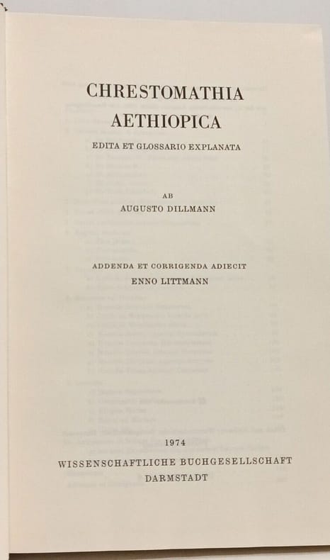 Berolini, Akademie-Verlag 1950 xvi,300p., 2 volumes bound in red cloth (spines used), 23cm., 2nd edition (addenda et corrigenda adiecit Enno Littmann), [introduction in latin, texts in Aethiopic]