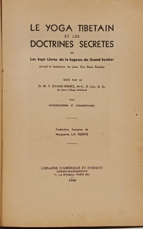 Librairie d'Amérique et d'Orient 1948 in8. 1948. Broché. Ouvrage édité par Evans Wentz présentant des enseignements ésotériques du yoga tibétain probablement une traduction ou compilation de textes traditionnels accompagnée de commentaires savants. Le livre explore des doctrines secrètes et pratiques spirituelles avancées du bouddhisme tibétain