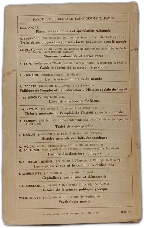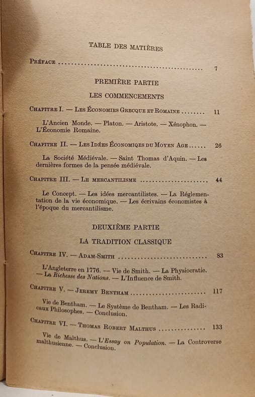 Quatrième édition augmentée de cet usuel de base pour l'histoire de l'économie politique: "Un instrument de travail rendu très pratique grâce aux index, en particulier celui consacré aux doctrines".Antiquité et Moyen Age. Le mercantilisme. La Physiocratie. L'École libérale. Le socialisme aux XIXe et XXe siècles. Les Ecoles réalistes. Index des noms cités. Index des doctrines. Table des matières.Bel exemplaire, frais, bien relié.
