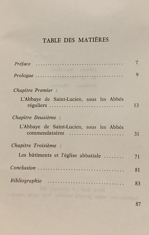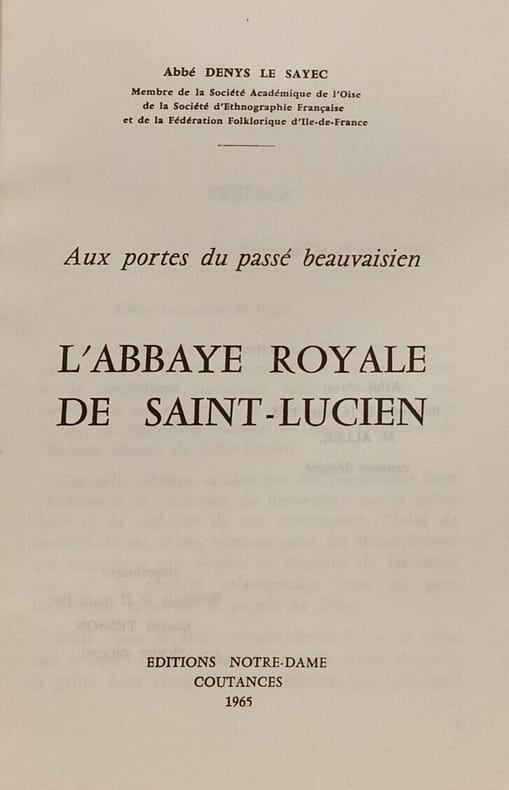 Une histoire de l'Abbaye royale de Saint-Lucien, célèbre pour son importance dans l'histoire et la fondation de Beauvais. Voir le sommaire sur photos jointes.