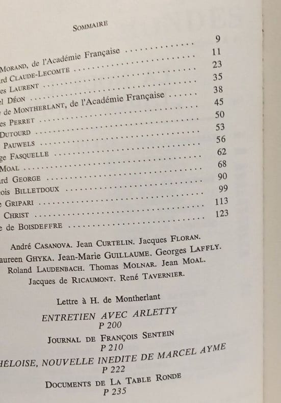 Revue. Paul Morand. Bernard Claude-Lecomte. Michel Déon. Henry de Montherlant. Jean Moal. Bernard George. Pierre de Boisdeffre. Héloïse, nouvelle inédite de Marcel Aymé... Classification Dewey : 840.091-XX ème siècle