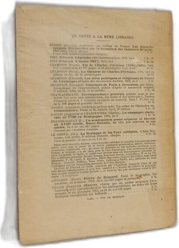 Librairie Ancienne Honoré et Edouard Champion Éditeurs 1912 1912. Broché. Charles Maurras développe les prémices de sa philosophie politique à travers l'étude des commémorations de trois figures intellectuelles françaises en 1898 : Chateaubriand Michelet et Sainte-Beuve. L'ouvrage examine comment les célébrations littéraires de cette année agitée ont introduit des dimensions politiques et religieuses et propose une critique du romantisme comme source d'illusions dans le domaine politique