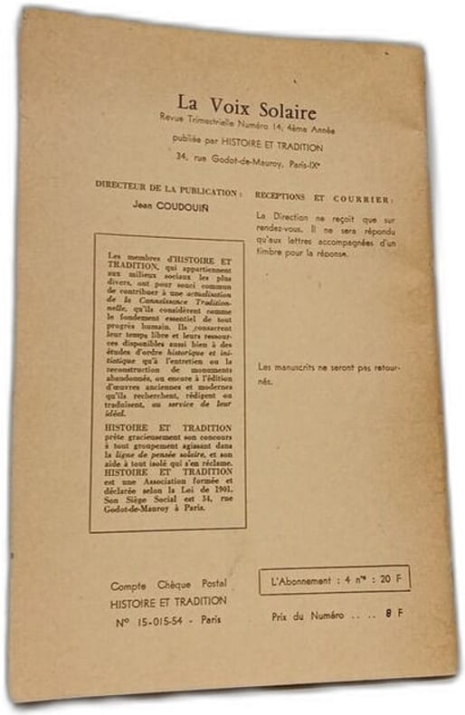 Sommaire : Tryptique pour l'Epiphanie : les rois mages dans l'Evangile ; l'Epiphanie ; l'Epiphanie ou l'apparition et la naissance de Jésus-Christ - Alchimie - La chevalerie solaire éternelle : le Kchatrya, chevalier de l'Inde traditionnelle - Documents : au gui l'an neuf - Tribune libre : où en est l'Ethnologie ? - Oecuménicité : la 2e session de Vatican II - Chroniques : Pèlerinage solaire : le sanctuaire de Greccio - La vie des groupements : le cerlce d'études artistiques Dante-Alighieri.. Classification Dewey : 70.49-Presse illustrée, magazines, revues