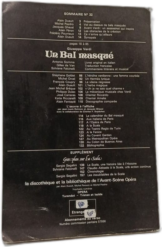 Avant Scène 1981 in8. 1981. Broché. Un Bal masqué (Un Ballo in maschera) est un opéra de Giuseppe Verdi créé en 1859 après une genèse mouvementée. L'œuvre s'inspire de l'assassinat du roi Gustave III de Suède lors d'un bal masqué en 1792 et met en scène le comte Riccardo un leader politique à la fois idolâtré et détesté dont la fin tragique survient lors d'une fête costumée. L'analyse proposée par Avant-Scène Opéra explore également une interprétation moderne de l'opéra comme une réflexion sur la politique américaine et les mécanismes des campagnes électorales