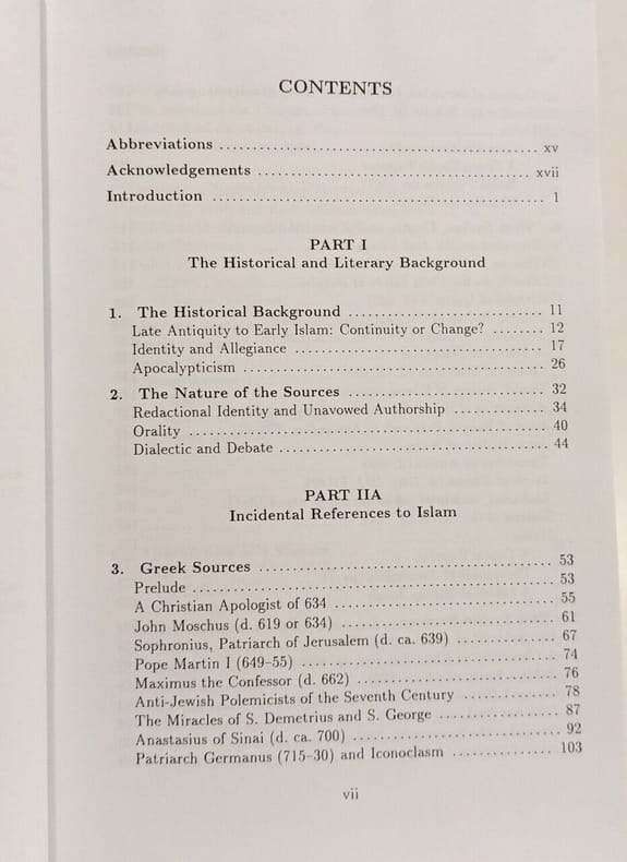 Darwin Press Inc 1998 872 pages 16 256x4 064x24 13cm. 1998. Cartonné. 872 pages. Cet ouvrage académique de Robert G. Hoyland propose une étude et une évaluation des écrits chrétiens juifs et autres sources non-musulmanes concernant les premiers siècles de l'Islam (environ 620-780 apr. J.-C.). Il rassemble et analyse environ 120 textes primaires en grec syriaque copte arménien latin persan et chinois pour offrir une perspective externe sur la formation de la tradition islamique