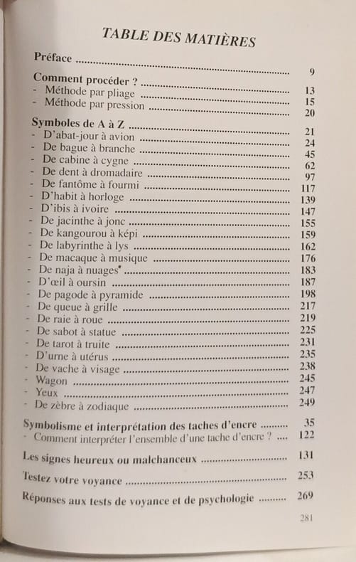 Paris, France loisirs, 1997 ; in-8, 281 pp., cartonnage de l'éditeur. Apprenez à réaliser et interpréter vos taches d'encre.
