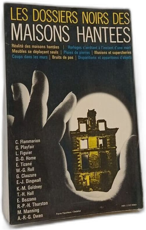 Paris, Tchou faffont, 1978 ; in-8, 316 pp., cartonnage de l'éditeur. Réalité des maisons hantées, horloges s'arretant à l 'instant d'une mort , meubles se déplacant seuls , pluies de pierres , illusions et supercheries, coups dans les murs , bruits de pas , disparitions et apparitons d'objets.