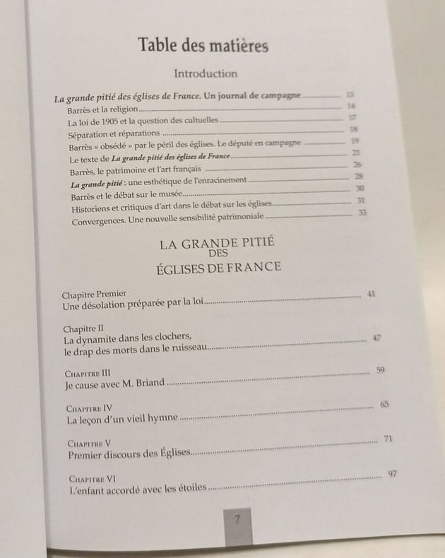 Paris, éd. Emile-Paul frères, 1914 (imprimé en novembre 1913), expl. n° 9397, in-12, demi-chagrin rouge, plats papier marbré "cailloux" dans les tons sombres, filets, auteur et titre dorés sur dos lisse, tranches "mouchetées", reliure de l'époque, III - (1 bl.) - 419 - (3 bl.) pp., notes, table des matières, Maurice Barrès (1862 - 1923) fut écrivain et homme politique français, figure de proue du Nationalisme français. "De 1910 à 1914, Barrès mène campagne pour la défense des églises menacées de ruine. La loi de Séparation de 1905 a des lacunes, le Pape refuse la constitution d'associations cultuelles, le patrimoine religieux français est en péril. L'antidreyfusard du tournant du siècle dépasse ici ses engagements antérieurs et le seul combat clérical. Avec des hommes politiques de différents bords, des artistes, des critiques et des historiens de l'art, il œuvre à une prise de conscience de l’opinion publique et à un amendement de la loi. N’excluant aucun des divers héritages qui ont façonné l’histoire de la France, Barrès considère les édifices religieux d’abord comme un « trésor national » qui constitue « la belle chaîne de l’art français » et doit, à ce titre, être préservé. C’est pourquoi il propose le classement global de toutes les églises – y compris les modestes églises de village – bâties avant 1800. Au musée, institution qui, selon lui, déracine, il préfère le patrimoine agissant in situ, qui incarne de manière concrète et immédiate la continuité historique de la nation et permet une adhésion de sentiment. La grande pitié des églises de France, texte hybride et original – fait de débats parlementaires, dialogues, lettres ouvertes, articles, méditations métaphysiques –, est le journal d’une campagne réussie qui a contribué au vote de la loi de 1913 sur les monuments historiques. Œuvre souvent citée et pourtant mal connue, elle marque la naissance d’une conscience patrimoniale nouvelle". Texte assez RARE en édition originale. Très bon état du papier; la reliure est légèrement défrapichie mais sans manque