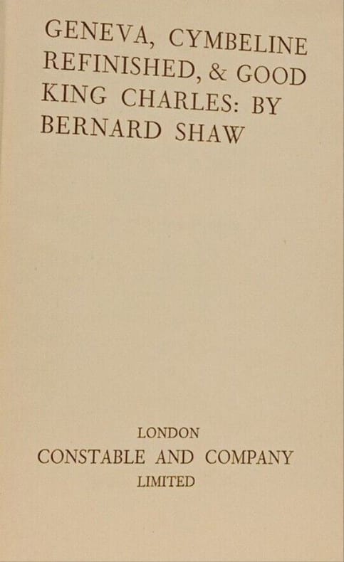 Constable and Company 1946 in8. 1946. Cartonné. Pièce de théâtre satirique de 1938-1939 qui imagine un procès fictif à la Cour internationale de Justice de La Haye où un juge doit entendre des personnages comme Hitler et Mussolini. L'intrigue est déclenchée par l'arrivée d'un Juif allemand à Genève cherchant des réponses sur la situation dans son pays