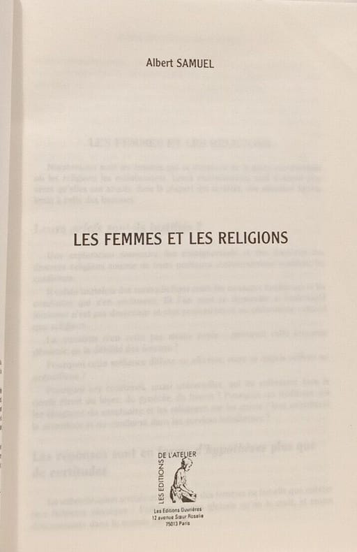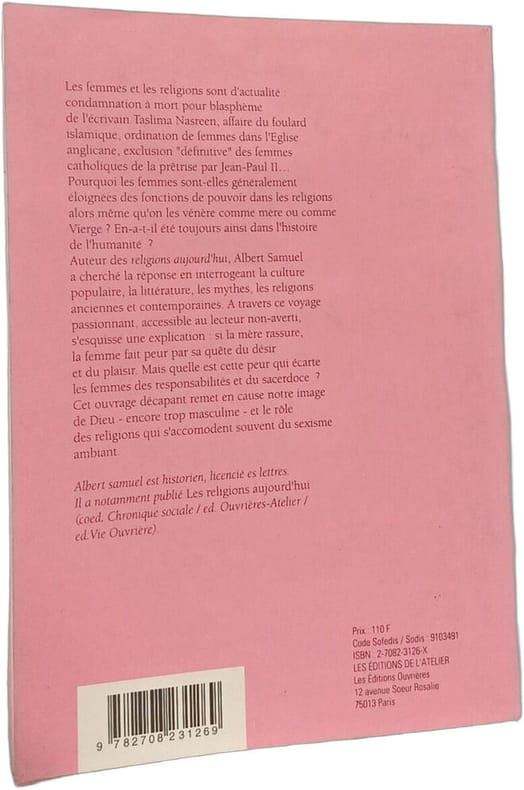 ATELIER 1995 15 6x1 8x21 6cm. 1995. Broché. Cet essai de 1995 examine la place marginalisée des femmes dans les religions interrogeant les peurs qui les écartent des responsabilités et du sacerdoce. L'auteur remet en cause l'image trop masculine de Dieu et le rôle des religions qui s'accommodent souvent du sexisme ambiant en explorant cette tension à travers l'histoire