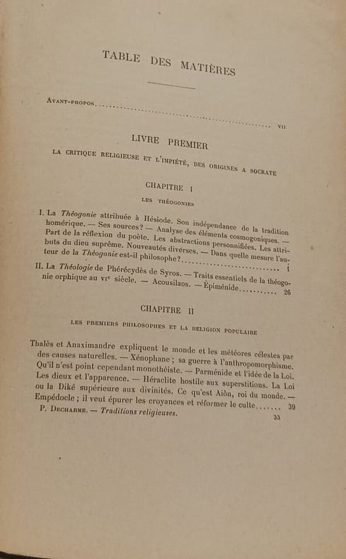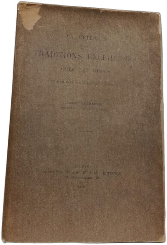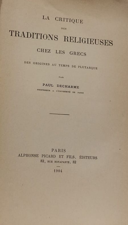 Paris Alphonse Picard et Fils, Editeurs 1904 in 8 (25,5x17,5) 1 volume reliure demi basane fauve ancienne, dos à cinq nerfs orné de fleurons dorés, XIV et 518 pages. Paul Decharme, 1839-1905. Bel exemplaire, bien relié