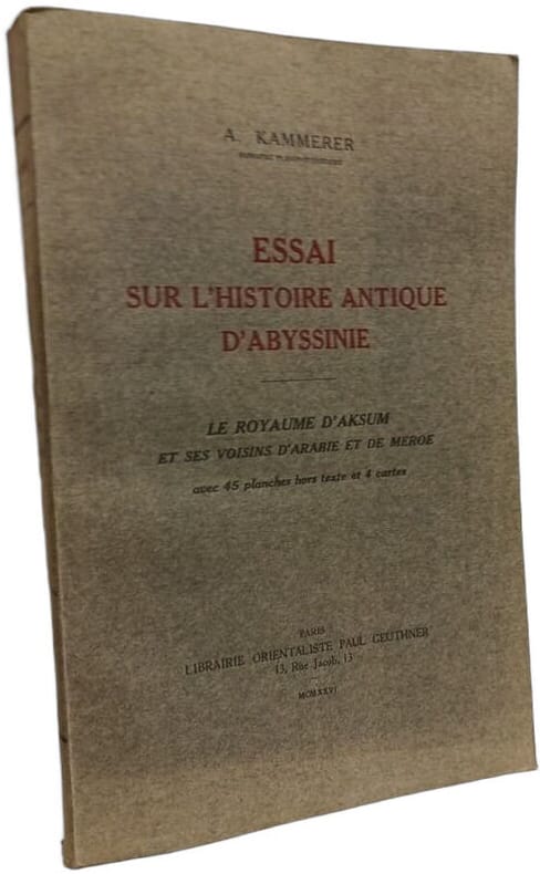 Librairie Orientaliste Paul Geuthner 1926 in8. 1926. Broché. Ouvrage historique de 1926 consacré à l'étude du royaume d'Aksum et de ses relations avec l'Arabie et le royaume de Méroé couvrant la période du Ier siècle av. J.-C. au VIIe siècle apr. J.-C. L'analyse inclut l'examen de l'influence de la culture hellénique l'introduction du christianisme et son impact sur la politique étrangère de la région ainsi que des descriptions archéologiques et des monuments