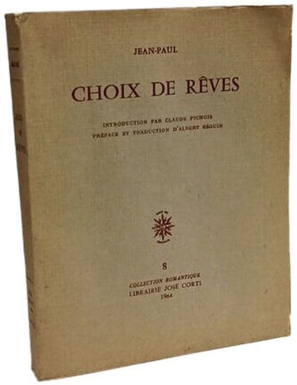 Première édition française de la traduction et de la préface de Béguin, "Jean-Paul et le rêve". Tirage limité à 2500 exemplaires numérotés sur vélin d'Alfa, le n° 1236.